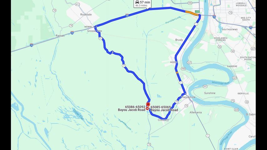 GOHSEP encouraged drivers to use an alternate route, but detours are scarce. Drivers will have to use La. 1 to bypass the closure, a detour that can exceed 46 miles or an hour of drivetime. It is usually a 15 minute commute.