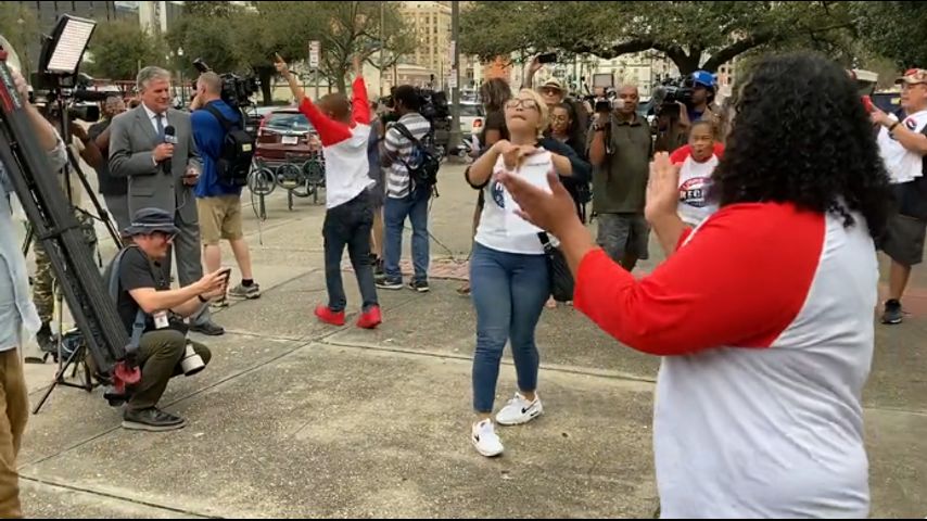 Group looking to oust LaToya Cantrell celebrates outside New Orleans city hall after submitting recall petition