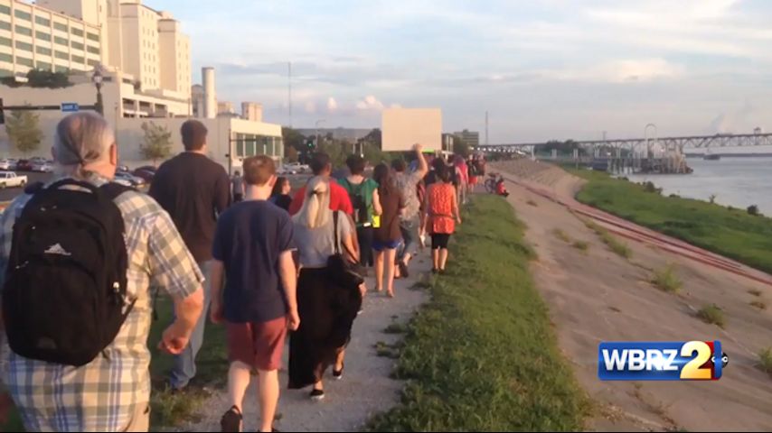 BATON ROUGE - A crowd gathered on the steps of the Louisiana state capitol building Sunday to march in support of those hurt during protests in Virginia.