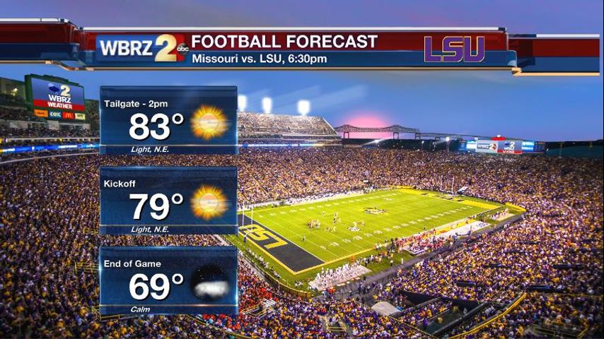 Up Next: Grab a jacket if you’re an early-to-rise tailgater. Layers will be the key though as morning temperatures in the 50s will quickly climb into the low 80s. Skies are expected to be mostly sunny in the afternoon but a few clouds are possible later and into the evening. Through the LSU game, temperatures will fall from the upper 70s to upper 60s. Sunday will repeat, putting the cap on a brilliant weekend of outdoor weather. Monday and Tuesday will be mostly sunny with highs in the mid to upper 80s and lows in the mid 60s.