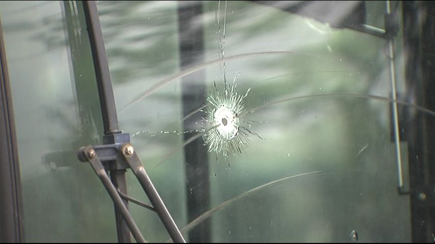 Video from the scene shows a bullet hole in the front windshield of the bus.