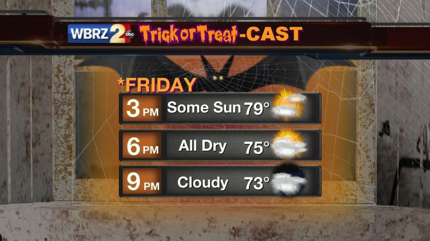 Up Next: Halloween weekend weather will be nothing if not eerie. On Saturday, despite cloud cover, highs will reach for the mid 70s. Rain and thunderstorms will overspread the region from west to east through the morning and into the afternoon. Outdoor activities should have a contingency—especially in the event of lightning. The Storm Prediction Center is watching South Louisiana for the potential of severe thunderstorms on Saturday Afternoon. Problems could include heavy rain and a brief tornado. This of course means Southern University and Alcorn State could have some difficulty kicking off a football game at 4pm. It wouldn’t be surprising if there is a delay. Rain will continue overnight, although the severe threat will diminish. Lows will stay in the upper 60s. By Sunday Afternoon, rain will begin to wrap up from west to east, but the area will be left with event totals of 2-3”. Rivers will need to be monitored again. Partial sunshine returns for Monday and Tuesday with highs near 80 and lows in the low 60s.