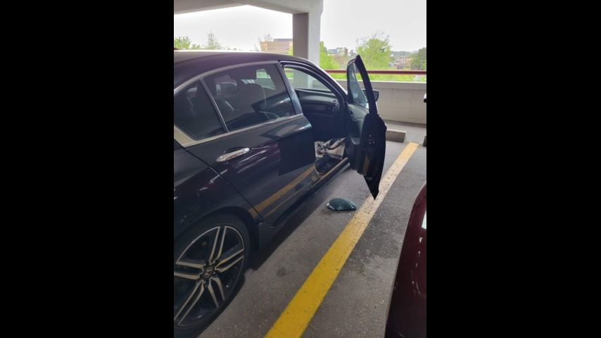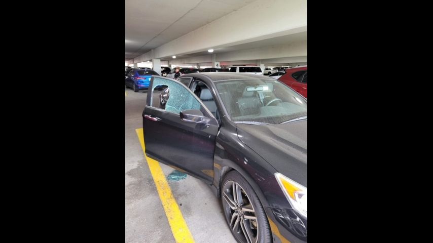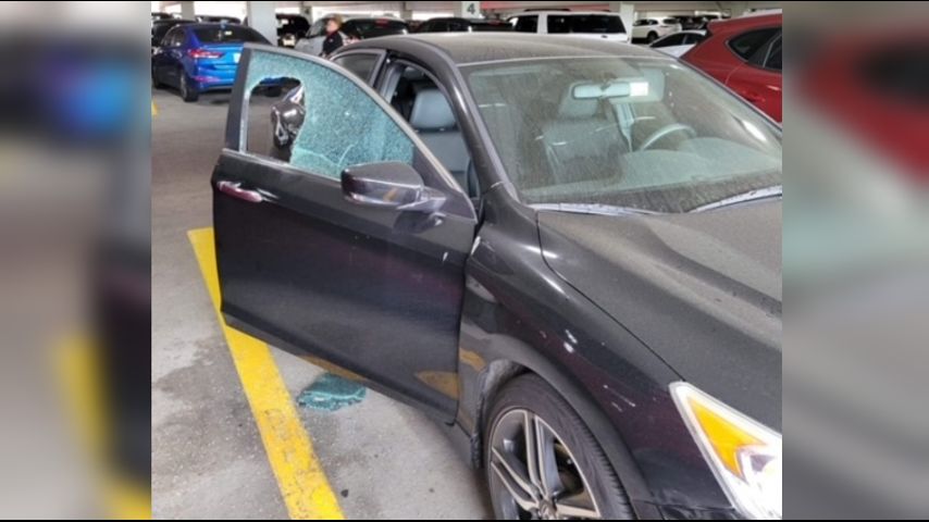 Investigators later found windows shattered on about 10 cars in the employee parking garage, but the man reportedly dropped whatever items he had stolen when he ran off.