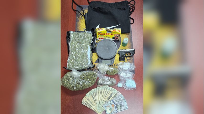 Police found 740 grams of marijuana, 56 grams of suspected fentanyl, 35.3 grams of suspected cocaine, .9 grams of suspected crack cocaine and a handgun that was reported stolen.