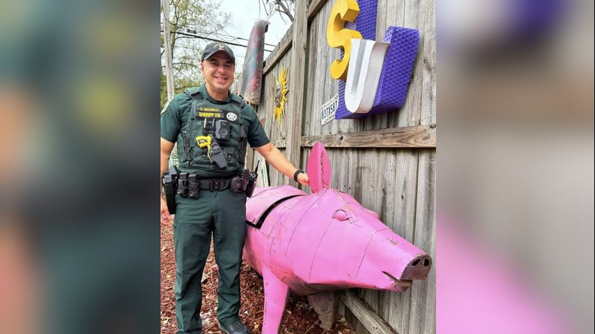 HAMMOND - After Salty Joe's pig mascot was stolen from its storefront on Christmas day, deputies were able to safely recover her and return her to her rightful place.