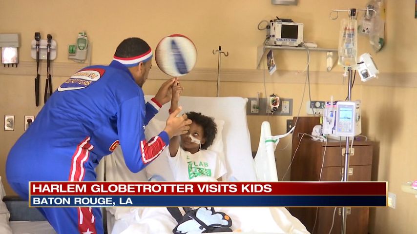 Harlem Globetrotters Zeus McClurkin went from room to room at OLOL Thursday afternoon and showed off his signature ball-handling skills. It was all part of the Globetrotters' hospital outreach program, 'Smile Patrol', which aims to bring joy to children who can't make it to their games.