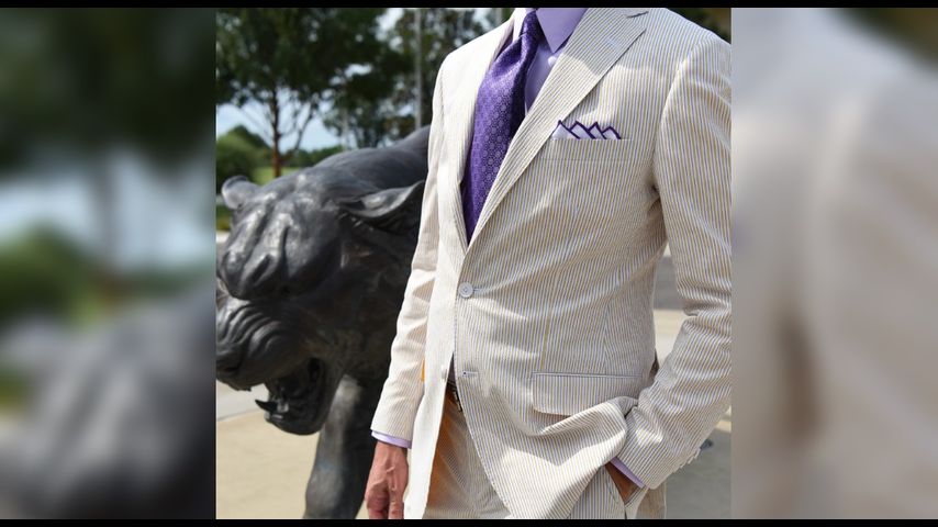 Haspel unveils new purple & gold seersucker suit; sales benefit LSU Alumni Association
