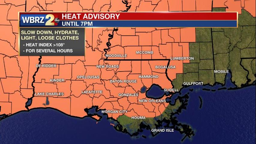 UPDATE: The National Weather Service in New Orleans has issued a Heat Advisory, which is in effect until 7 PM CDT this evening. Air temperatures will climb into the mid 90s with high dew point temperatures causing it to feel like 107-112 degrees. These high heat index values will cause an increased risk of heat-related illnesses including heat exhaustion and heat stroke. Drink plenty of fluids, stay in an air-conditioned room, stay out of the sun and check up on relatives and neighbors. If you work or spend time outside, when possible, reschedule strenuous activities to early morning or evening. Know the signs and symptoms of heat exhaustion and heat stroke. Wear lightweight and loose fitting clothing when possible and drink plenty of water.