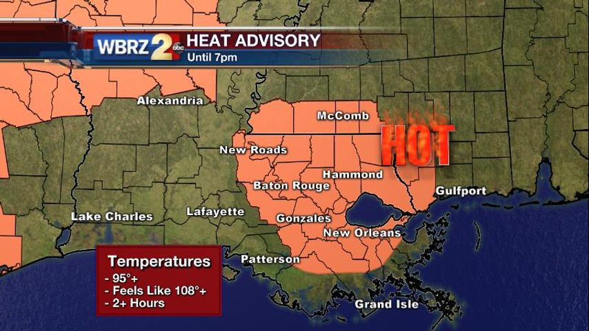 Forecast Discussion: While the jet stream remains north of the local area, only a few weak impulses will be available to enhance the possibility of an isolated shower or thunderstorm. Forecast models hint at some positive vorticity advection Tuesday, Wednesday and then again this weekend. While during the summer season this may be enough to kick out a bit of convection, a limiting factor may be moisture. Certainly plentiful at the surface, relative humidity charts show dry air in the mid and upper levels meaning that development won’t come easily. All in all, there will likely be just enough low level moisture, with the aid of some forcing at those specified times that a subtle marine breeze or outflow boundary could generate some spotty activity during peak heating hours. Either way, measurable rain shouldn’t exceed 20-30% of the 13 Parish 3 County forecast area on any given day. With very high heat and humidity, even by July standards, heat indices will be the main concern through the forecast period.