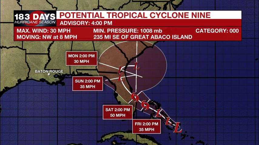 The Tropics: An area of disturbed weather over the central and southeastern Bahamas is gradually becoming better organized while surface pressures are falling in the area. Conditions are becoming favorable for a tropical depression or a tropical storm to form within the next day or so as the system moves toward the northwest through the northwestern Bahamas and toward the Florida Peninsula. Potential Tropical Cyclone advisories will likely be initiated later today. Hurricane Hunters are scheduled to investigate the system this afternoon, if necessary. Additionally, a tropical wave located just west of the Cabo Verde Islands is producing a small area of disorganized showers and thunderstorms. There is a 40 percent of tropical development by early next week across the south, central Atlantic.