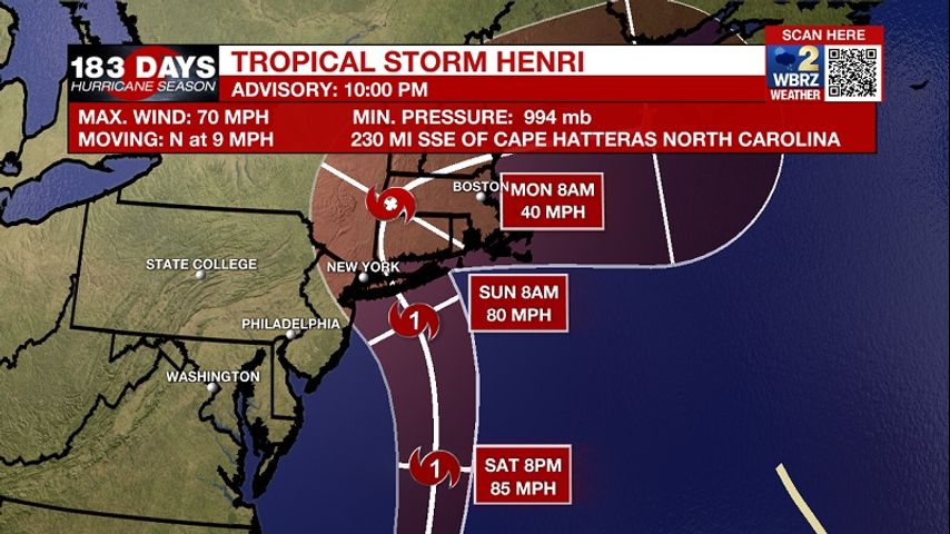 Tropical Storm Henri is forecast to become a hurricane by Saturday, then begin making a track to the north towards the northeast U.S.