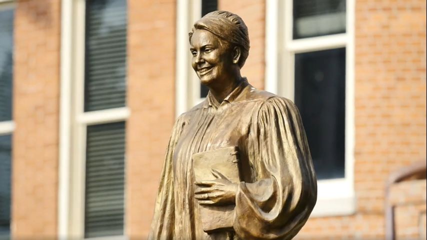 NEW ROADS - Family, friends, former colleagues, and prominent members of the legal community honored the career and legacy of former Chief Justice of the State Supreme Court Catherine "Kitty" Kimball by unveiling a large, bronze statue in front of the 18th Judicial District Courthouse in Pointe Coupee Parish.
