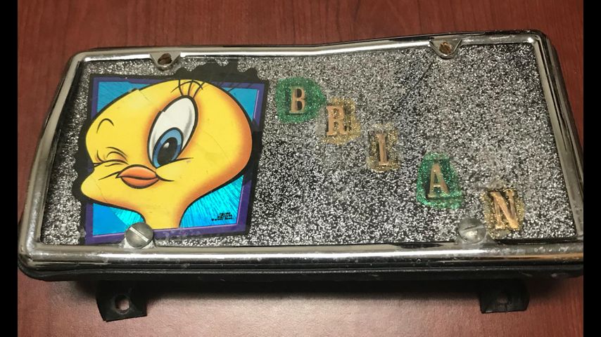 Police also released a photo of a vehicle plate that was left behind at the scene. The plate features the 'Looney Tunes' character Tweety Bird along with the name 'Brian'.