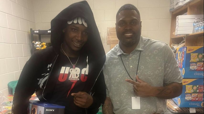 David Catherine, known as RealBleeda, stopped by the magnet school to donate snacks for the upcoming LEAP tests. He also donated a PlayStation 5 to the school's esports program.