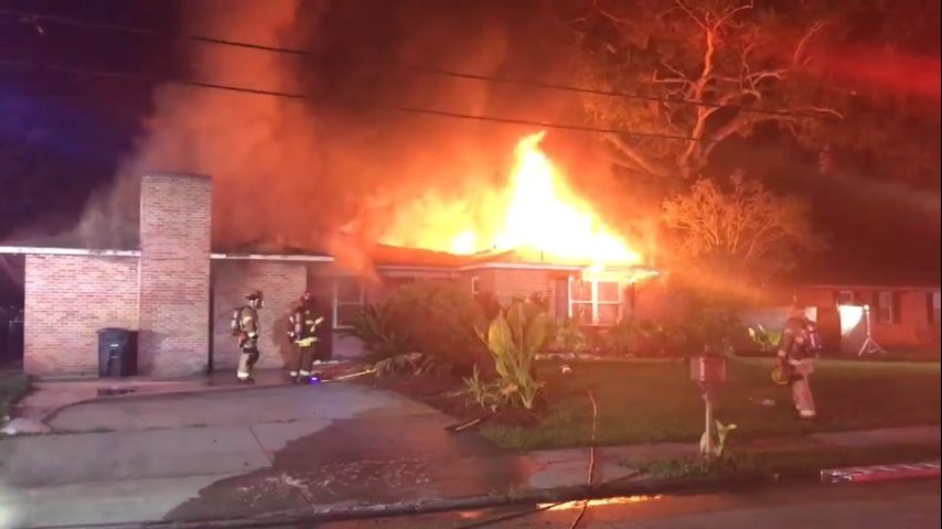 The fire was reported just after 11:30 p.m. on Greenforest Drive. Firefighters initially attempted to extinguish the fire from within the home but were pulled out when conditions became "too dangerous for interior operations."