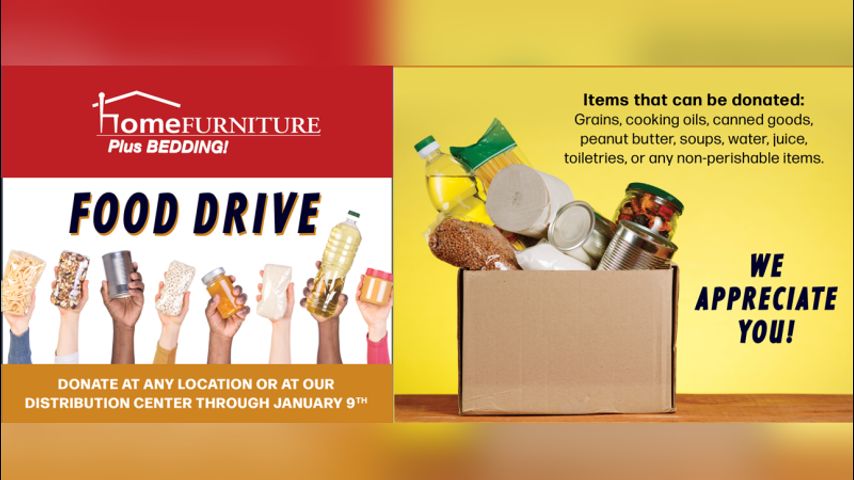 Home Furniture Plus Bedding holding food drive, accepting donations through the new year