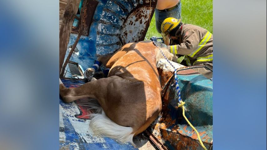 Hammond Fire Department said the horse did not appear to be injured and was walking around after being cut free.
