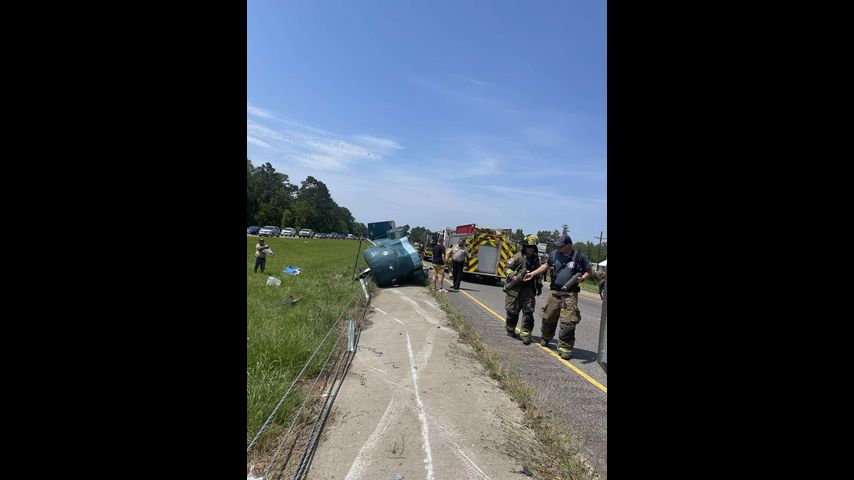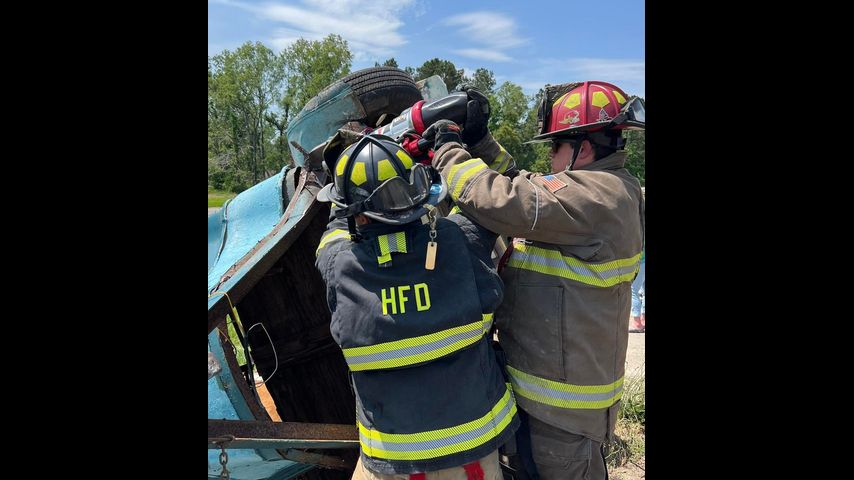 HAMMOND - Firefighters worked to free a horse Saturday after the trailer tipped over in a vehicle accident.