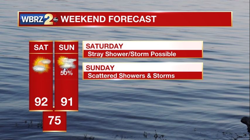 Looking Ahead: An upper-level disturbance will move through on Sunday, creating scattered showers and thunderstorms across the region mainly in the afternoon and evening. While a washout is not expected, a back-up plan for outdoor activities may be needed. Make sure you have the WBRZ WX app downloaded to stay on top of the radar and forecast. Scattered afternoon showers/storms will likely continue into at least Tuesday as well.