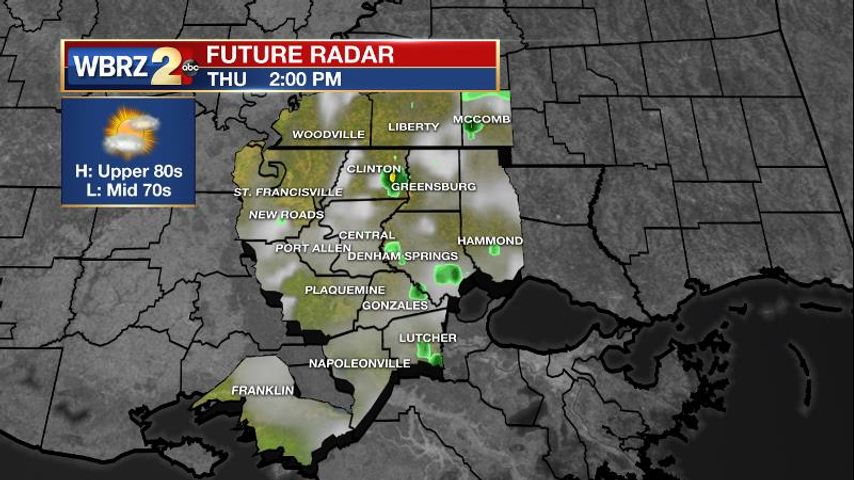 Today and Tonight: Once again, Thursday high temperatures will make it into the upper 80s. Do expect a more humid feel than Monday and Tuesday. Skies will feature a mix of sun and clouds—a few of which may wring out a shower during the afternoon. 13 Parish, 3 County forecast area rain coverage should not exceed 20 percent. Winds will remain southeast at 10mph. Overnight low temperatures will stay mild and muggy in the low 70s.