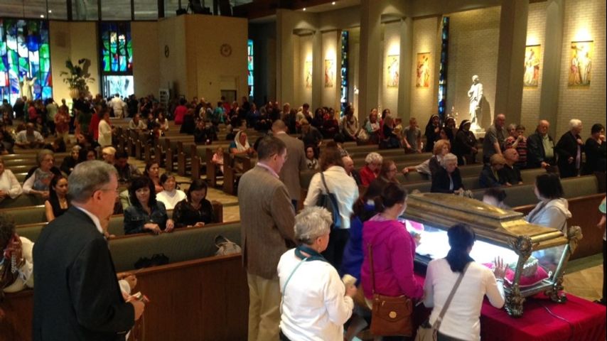 Father Cleo Milano at Our Lady of Mercy Church said that this is the first time the capital city has seen the relics of a Saint.
