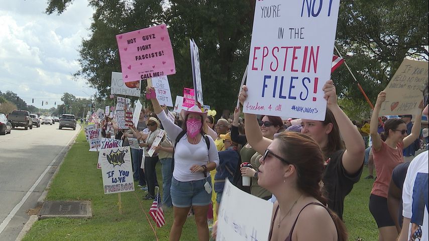 BATON ROUGE - Crowds of people gathered in Baton Rouge alongside Perkins Road, joining thousands of other cities in the country in the "No Kings Protest" to speak out against President Donald Trump's polices.