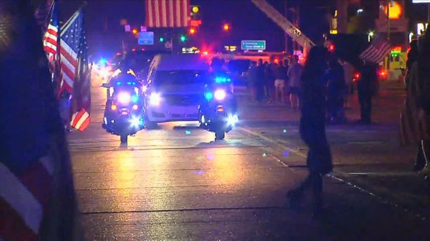 Holding flags, flashlights and some fighting tears, they gathered along Range Avenue. They waited for a while Friday. As the sunset turned to twilight, the flashing lights of the motorcade appeared.