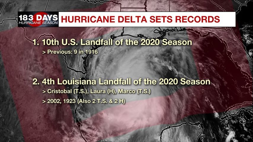 Hurricane Delta broke records as the 10th landfall of the 2020 season. The previous record number of landfalls in a season was nine, set back in 1916.
