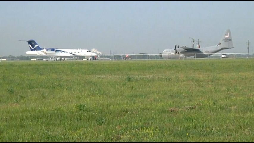 Two massive aircrafts flew into the Baton Rouge Metro Airport, for one day. One was the U.S. Army Reserve WC-130J 'Hurricane Hunter.'