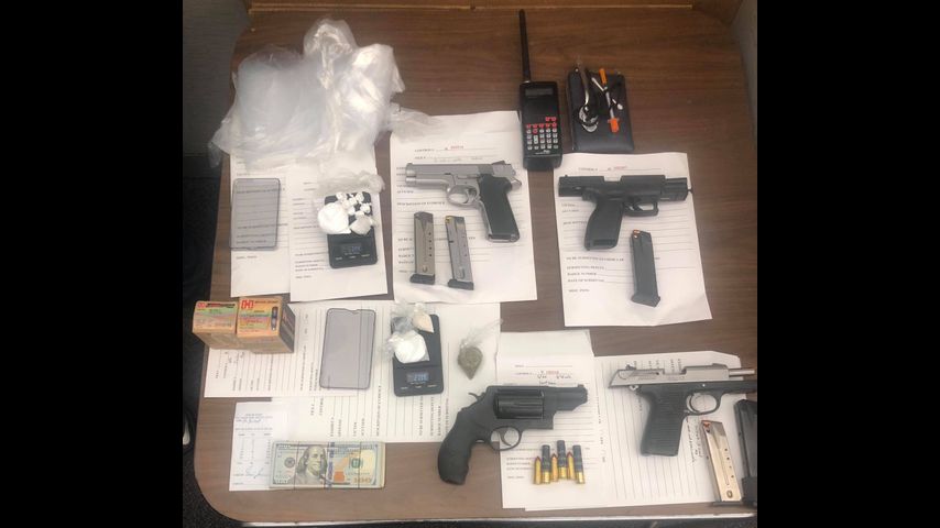 Authorities obtained a search warrant for the Cage residence on Joyce Drive and found the following: cocaine, meth, marijuana, drug paraphernalia, multiple firearms, and nearly $2,000 in cash.