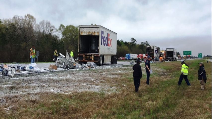 According to a post, I-10 East is completely blocked about three and a half miles east of the Louisiana/Texas state line. Traffic is currently backed up several miles in Texas.