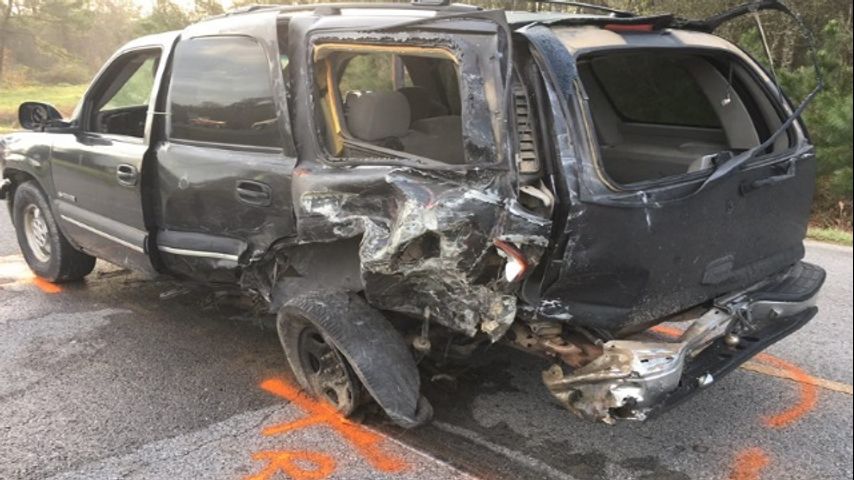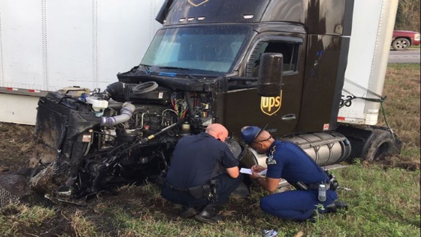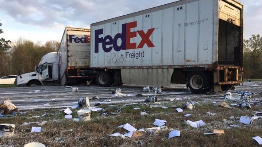 The crashes appeared to involve two delivery trucks and other vehicles. Crews are using high-pressure equipment to remove slick paint from the roadway.