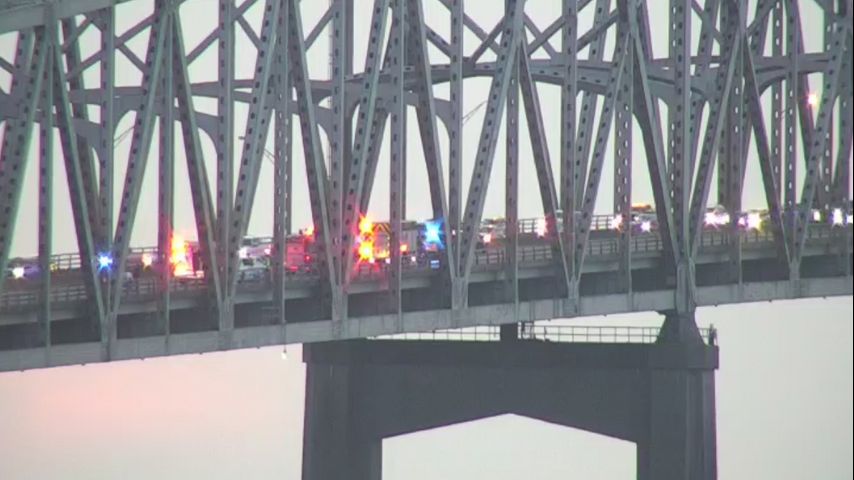 Authorities said the wreck happened just before 5 p.m. in the middle of the bridge. The victim was taken to a hospital for their injuries.