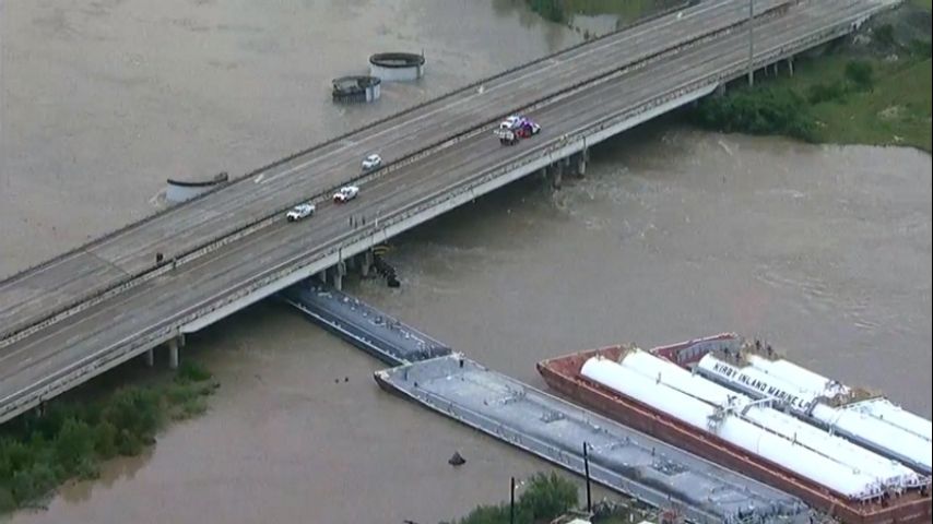 HOUSTON - At least two barges hit the I-10 bridge over the San Jacinto River in Texas following Tropical Storm Imelda.