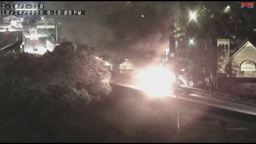 Baton Rouge Fire Department shut down I-10 near the I-10 and I-110 split, but re-opened one lane around 10 p.m.