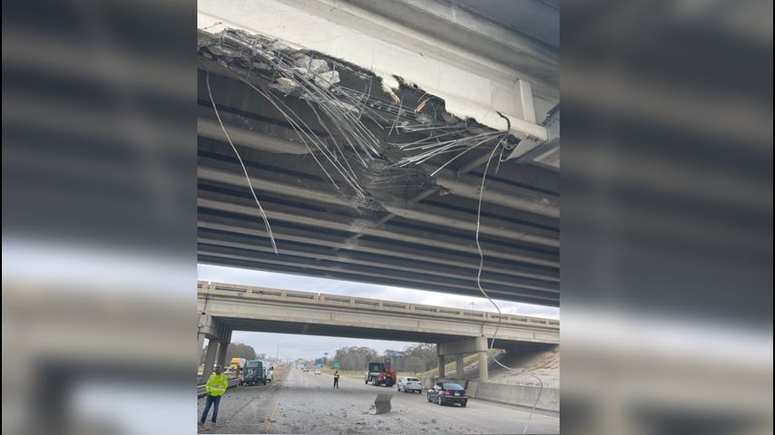 The crash happened at the I-10 overpass on Evangeline Thruway. Pictures shared by the Louisiana Department of Transportation and Development showed the wreck left part of the bridge's frame exposed.