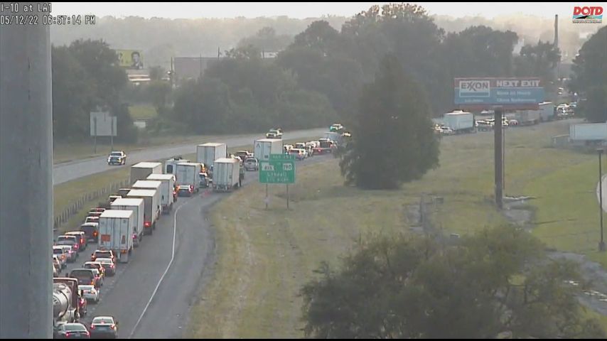 All lanes are open on I-10 West at Mile Marker 153 (past LA 1, Port Allen). Congestion has reached Dalrymple Dr.