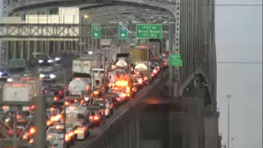 BATON ROUGE - I-10 West was backed up all morning Tuesday after two trucks collided on the Mississippi River Bridge, pinching traffic down to one lane.