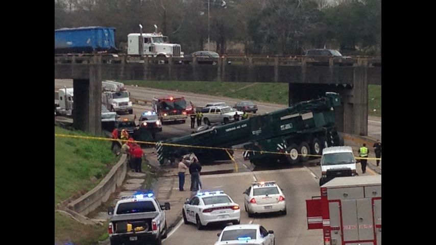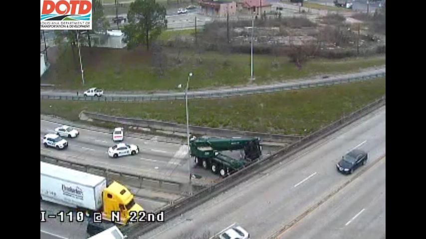 The crash happened around 8:22 a.m. According to the Baton Rouge Police Department, a crane truck registered to Turner Industries was traveling southbound in the outside lane of I-110 near the North 22nd Street overpass curve. The driver, Jacob McGuff, lost control of the vehicle, crossed the center and inside lanes and struck the overpass support, BRPD said. McGuff was ejected and died on the scene.