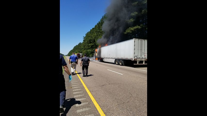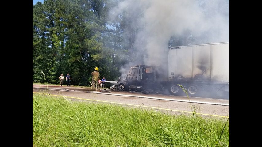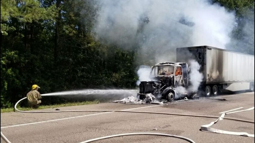 Burning 18-wheeler stalls traffic on I-12 Friday