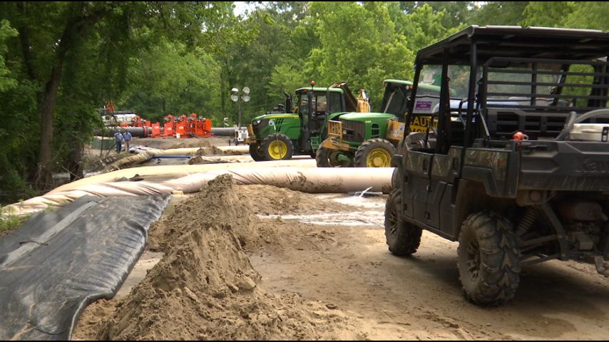 Just up the road, water is also flowing out of Spanish Lake through pumps into Bayou Manchec in Ascension Parish. The goal was to have six pumps in operation, but Parish President Clint Cointment said they have come across some challenges installing them. So at the end of the week, the parish is going to cut through Alligator Bayou Road at Fish Bayou for additional drainage.