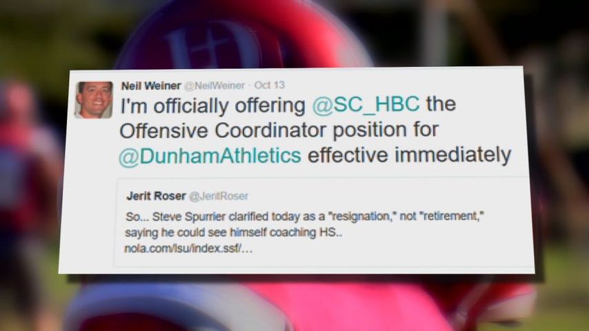"I'm officially offering [Spurrier] the offensive coordinator position... effective immediately," he messaged on the social media site.