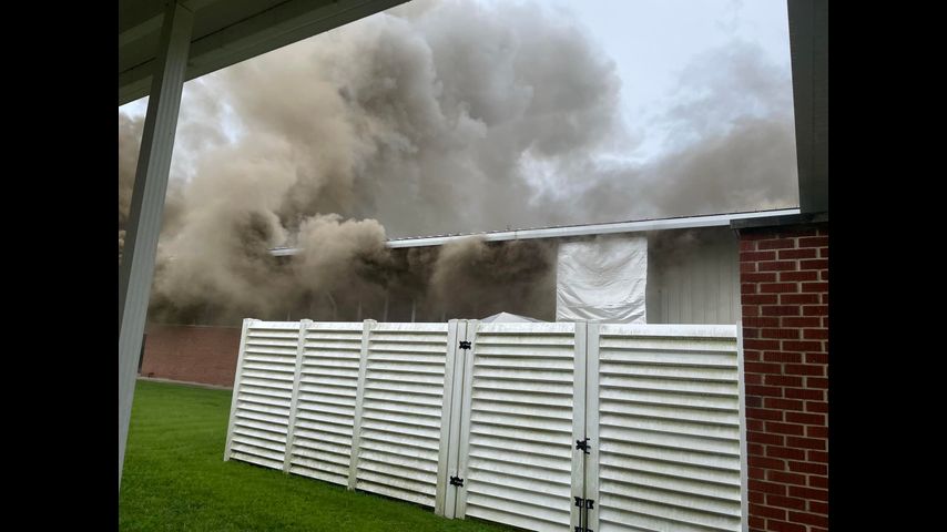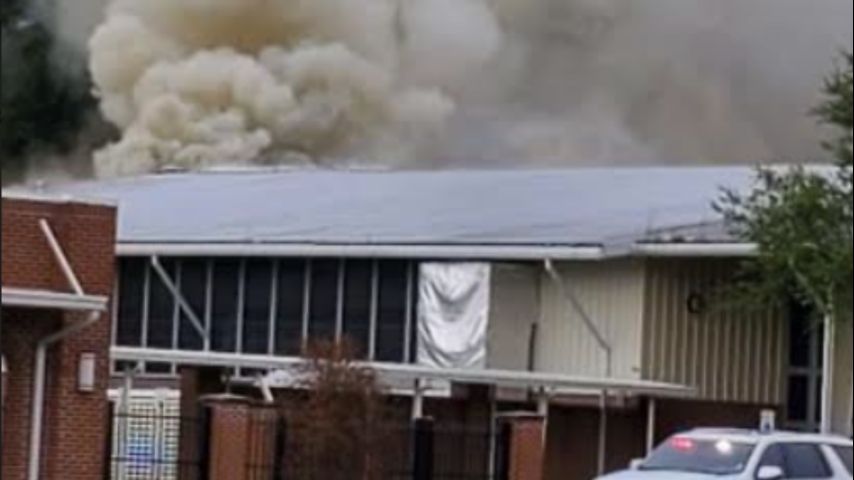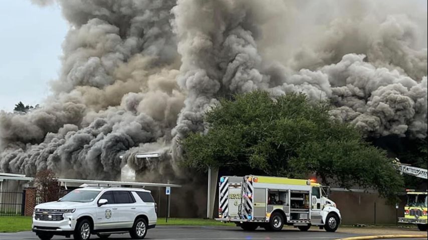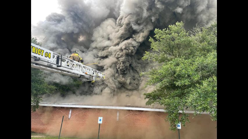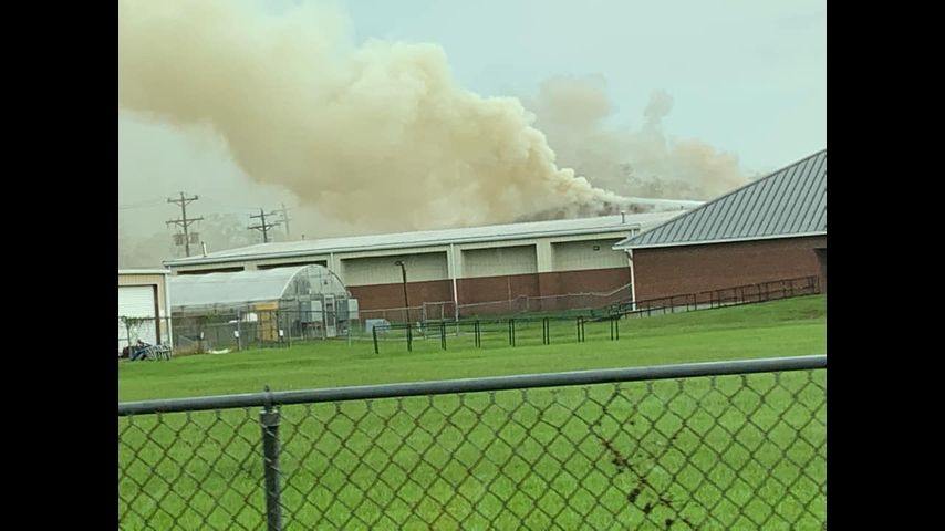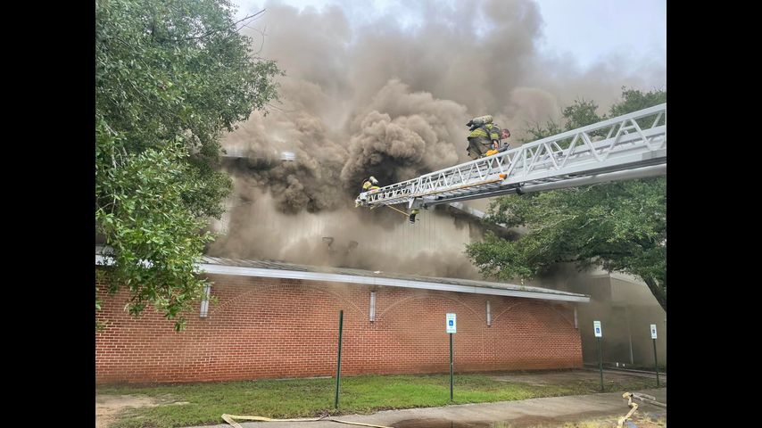 Photos of the blaze showed a plume of smoke billowing from the gym at Live Oak Junior High on Old LA Highway 16. Officials with the school system said there were no reported injuries.