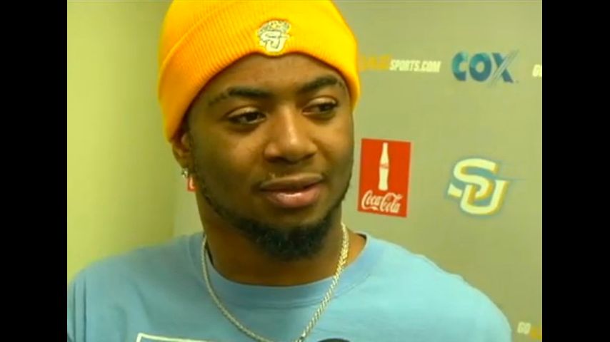 After his flight touched down in Baton Rouge, Gales headed straight to the Southern University campus to receive his well-deserved welcome home. As he and his family got off the plane, an impromptu pep-rally awaited to get the tribute started. Live music and fire trucks were also a part of the enthusiastic salute.