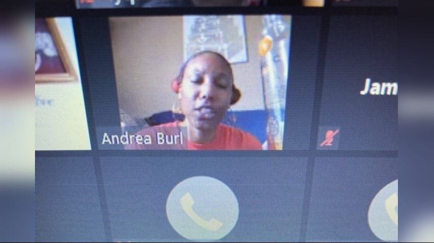 "Oh, she turned her video off again," a woman said. "Let's talk in a minute, Andrea."