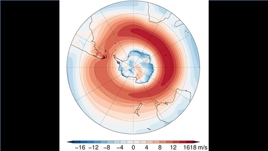 Stratospheric ozone absorbs harmful ultraviolet solar radiation and that energy heats the stratosphere, which is Earth’s second lowest layer. This is why temperature begins to increase with height in this layer, versus here in the troposphere where it cools with height. Due to the lack of regulations on ODS’s before 1989, these chemicals were able to eat away at the ozone near the Antarctic, which allowed the stratosphere to cool by 7°C between the late 1960s and the late 1990s. This cooling increased the north-south temperature gradient between the South Pole and the mid-latitudes, strengthening westerly winds in the stratosphere and shifting the jet stream in the lowest level in the atmosphere toward the South Pole. It is currently not understood why westerly winds in the second-lowest layer of the atmosphere affect the jet stream in the lowest layer of the atmosphere, but it has been found that they are related and do have an impact.
