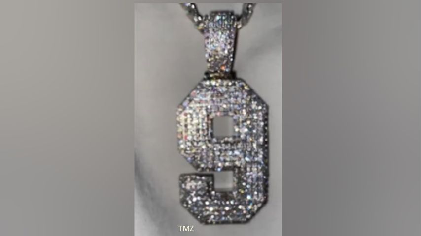 TMZ reports that the #9 pendant, which is made of 18k white gold and VVS diamonds, sits in an 18k white gold prong-set Cuban chain with VVS diamonds.