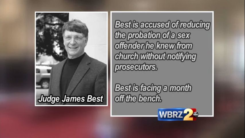 Judge James Best also faces possible sanctions. He's accused of reducing the probation of a sex offender he knew from church without notifying prosecutors. He faces a month off the bench.