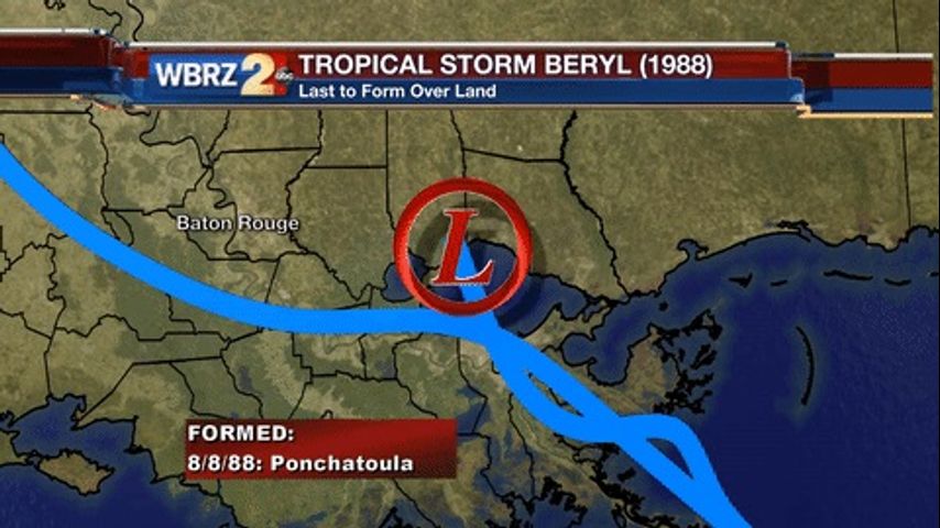The last time a storm formed "over land" was in August 1988 when Tropical Depression Three developed over Ponchatoula here in Louisiana. It then proceeded to travel over Lake Ponchartrain becoming a Tropical Storm Beryl in the Gulf of Mexico just off the coast of St. Bernard Parish.