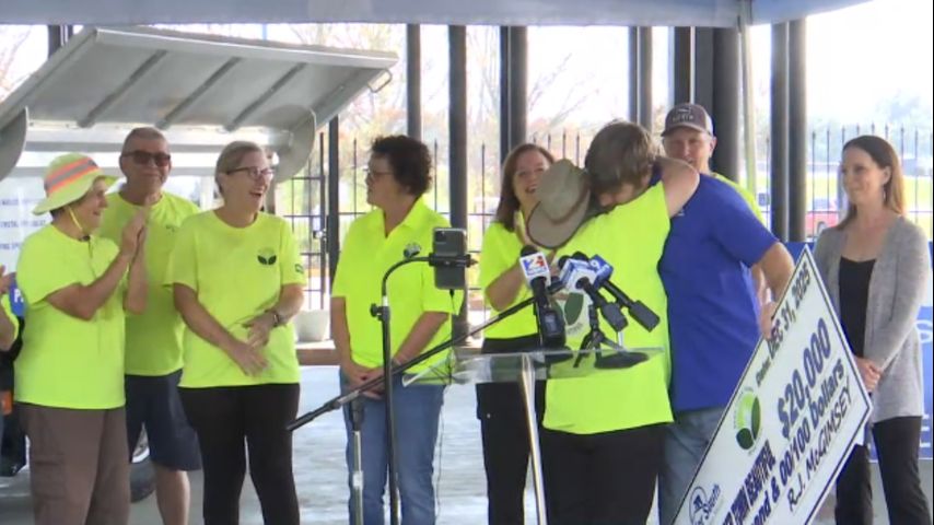 The owner of Premier South Roofing presented the organization with a $20,000 check, as well as trash bags, gloves, gas cards and more supplies to help them pick up litter across the capital area.